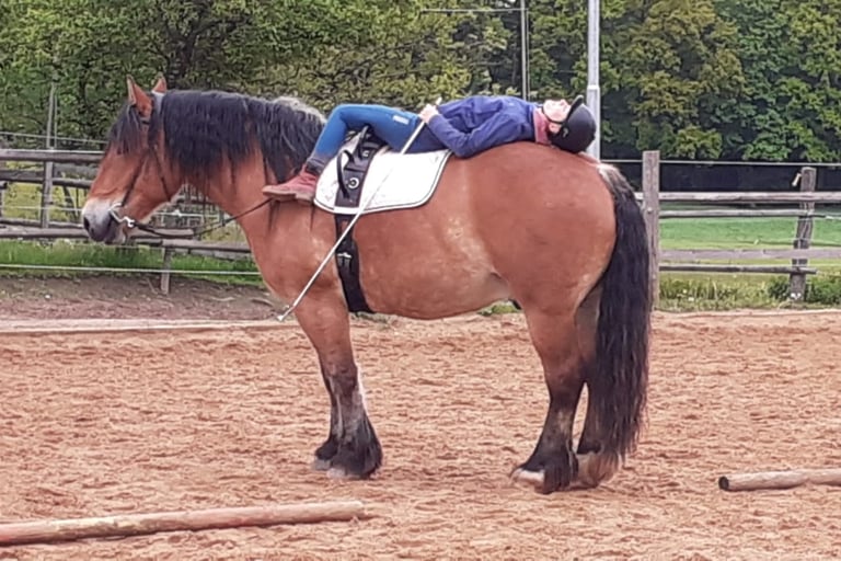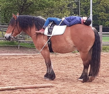Zu Beginn der ersten Einheit führe ich einen umfassenden Befund durch, um die Eignung und die Möglichkeiten der Therapie zu prüfen. Dies erfolgt sowohl am Boden als auch auf dem Pferd. Anhand der gewonnenen Informationen plane ich individuell, welche Hilfsmittel zum Einsatz kommen und wie die Therapie gestaltet wird.
